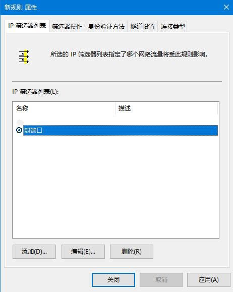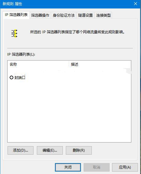 點擊確定后,來到ip篩選器列表,選擇剛才添加的“封端口”,然后選擇“篩選器操作”選項卡