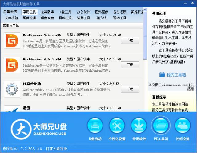 大師兄U盤啟動制作工具是一款U盤啟動盤制作工具。使用該工具,輕輕松松幫助你實現U盤啟動,只需要簡單的幾步即可完成。操作簡單,使用方便,是小白用戶維護新舊電腦系統的不錯選擇。