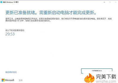 7、完成后,可以選擇是否立即重啟以進行更新。選擇立即重啟,便可以正常開啟Win10創(chuàng)意者更新正式版的升級。
