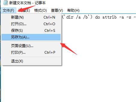 然后選擇“文件”,“另存為”,將文件名命名為“顯示隱藏文件.cmd”,然后選擇保存在U盤中。