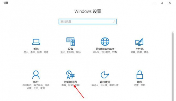 第三步:在設置窗口選擇時間和語言選項卡。