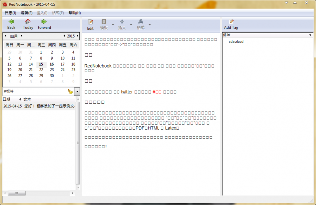 RedNotebook是一款界面簡潔的、可以運行在Linux環(huán)境下的桌面日記本。RedNotebook不論是拿來寫日記,還是寫些簡單的每日計劃,都非常適用。RedNotebook右邊的邊欄是個單獨的區(qū)域,可以在里面建立分類的文本,非常適合來記錄計劃、靈感,或者今日大事。