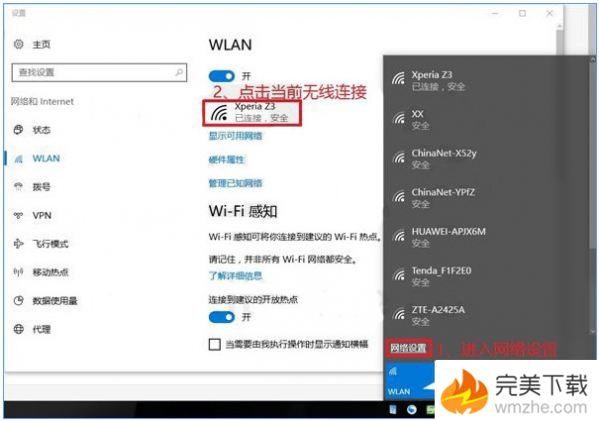 1、點(diǎn)擊右下角網(wǎng)絡(luò)圖標(biāo)進(jìn)入網(wǎng)絡(luò)設(shè)置,點(diǎn)擊當(dāng)前無線連接(或者有線鏈接):