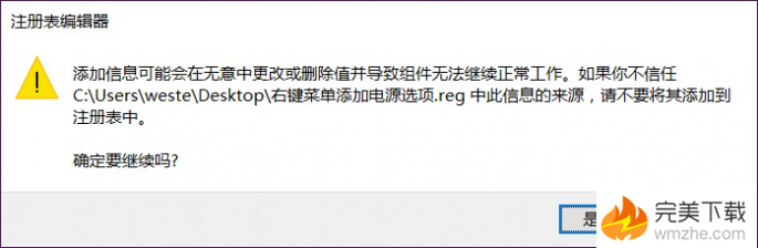 根據(jù)提示操作完成后在桌面點擊右鍵試試,不用重啟就可以讓菜單中出現(xiàn)電源項了,是不是很方便?如果想取消怎么版?壓縮包內(nèi)還有一個“關(guān)閉右鍵電源菜單.reg”雙擊根據(jù)提示運行后右鍵菜單就恢復(fù)如初了。