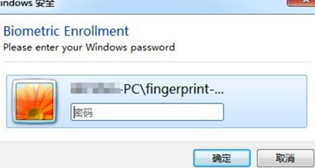 選擇 [ 繼續 ] 之后,會彈出該生物特征設備的相關軟件,先是驗證當前帳戶的密碼。