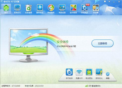 金山衛士是一款由金山網絡技術有限公司出品的查殺木馬能力強、檢測漏洞快、體積小巧的免費安全殺毒軟件。金山衛士采用金山領先的云安全技術,不僅能查殺上億已知木馬,還能5分鐘內發現新木馬;漏洞檢測針對windows7優化,速度更快;更有實時保護、插件清理、修復IE等功能,全面保護電腦的系統安全。