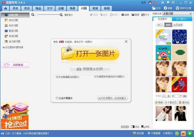 美圖秀秀(圖片處理軟件)是一款超好用的圖片美化軟件,可以1分鐘搞定個性的非主流圖片、非主流閃圖、QQ頭像、QQ空間圖片,還有獨家的非主流場景、搖頭娃娃,而且完全免費哦!美圖秀秀獨有的圖片特效、美容、拼圖、場景、邊框、飾品等功能,加上每天更新的精選素材,可以讓你1分鐘做出影樓級照片!美圖秀秀支持一鍵發到新浪微博、人人網、騰訊微博等。