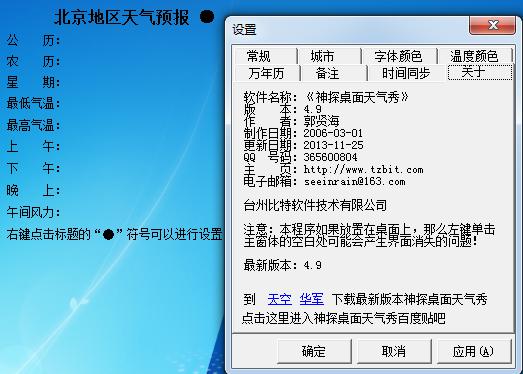 桌面天氣秀(XDeskWeather)是國內最廣受歡迎、下載量最大的一款全中文桌面天氣預報軟件。她采用全球最大的中文氣象網站數據,能準確預報全國3000多個縣級地區的六天天氣預報。