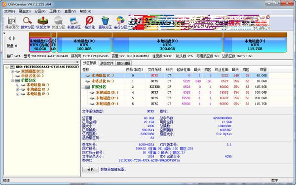 DiskGenius是在最初的DOS版的基礎上開發而成的。DiskGenius是一款界面清楚、功能強大、使用方便的磁盤分區及數據恢復工具軟件。DiskGenius支持對GPT磁盤(使用GUID分區表)的分區操作。DiskGenius除具備基本的分區建立、刪除、格式化等磁盤管理功能外,還提供了強大的已丟失分區搜索功能、誤刪除文件恢復、誤格式化及分區被破壞后的文件恢復功能、分區鏡像備份與還原功能、分區復制、硬盤復制功能、快速分區功能、整數分區功能、分區表錯誤檢查與修復功能、壞道檢測與修復功能。