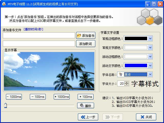飛華MTV電子相冊是一款優秀的數碼相冊制作軟件。軟件可以將數碼照片轉成VCD/SVCD/DVD碟機所支持的格式,功能實用強大,又簡單易用,是您家庭制作VCD/DVD電子相冊的最佳選擇。您可以將所拍攝的數碼照片,配上喜愛的背景音樂、卡拉OK歌詞字幕、普通字幕、背景圖片、片頭、片尾和轉換特效,制作輸出VCD、SVCD、DVD視頻文件,使用刻錄軟件直接刻錄成VCD、SVCD和DVD視頻光盤,就可以在碟機中像播放MTV一樣在電視上播放您親自導演的MTV了。