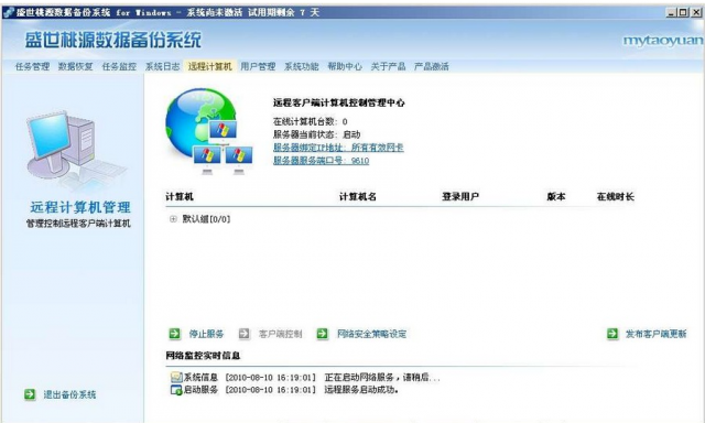 軟件系統支持各種高端功能,含完全備份、增量備份、差異備份、同步備份、鏡像備份、壓縮備份、加密備份等,并支持實時、計劃兩種備份模式。支持MS SQL、MY SQL、ORACLE、INFORMIX等數據庫在線備份,支持完全、差異、事務日志備份等模式。