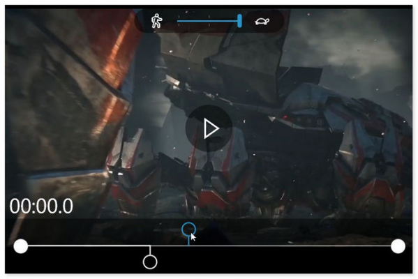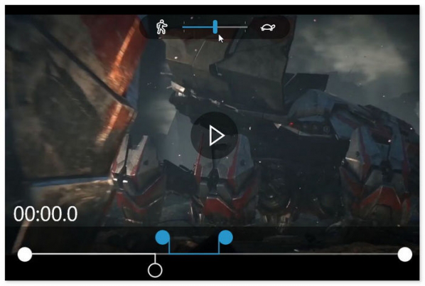 當選擇為“最慢”時,進度條就會變成下圖的樣子,此時你不能選擇慢動作的范圍,這個比較適合來制作一些射擊游戲的擊中瞬間,還是非常不錯的,其他功能同上。
