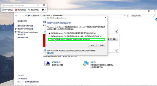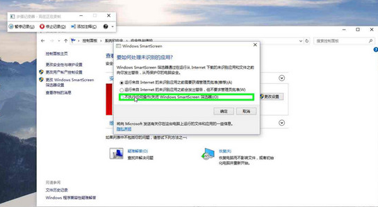 5、點擊選項“不執行任何操作(關閉 Windows smartscreen篩選器)”完成后確認設置;