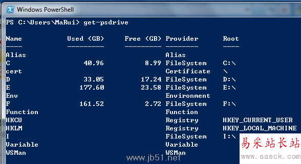 可以通過PowerShell中的PSDriver來獲取當前驅動器列表,基本上所有的Provider都有一個唯一的PSDriver,但是文件系統和注冊表卻是個例外,通過下面的命令查看: