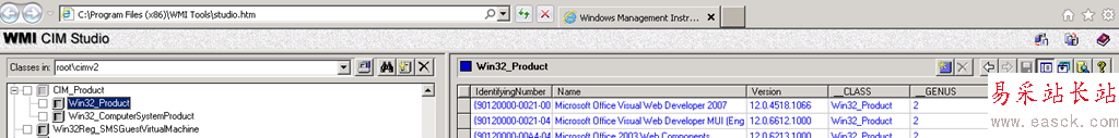下載并安裝WMI Administrative Tools之后,會有4個工具,最常用的是其中的WMI CIM Studio。在開始菜單里單擊它,你會發現它是以網頁形式在IE瀏覽器中打開的。
