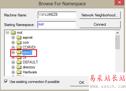 3、選擇合適的命令空間(這里選擇常用的root/cimv2),然后單擊OK按鈕,如圖3所示;
