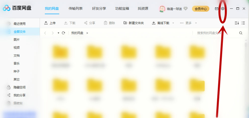 2、在百度網盤首頁,單擊右上角的【設置】按鈕