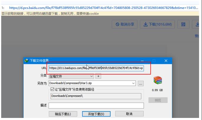 重新彈出下載頁面,重新獲取下載鏈接,復(fù)制【URL】一欄的鏈接,