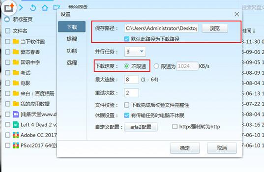 2、在下載界面中,選擇合適的下載保存路徑,像小編就是將下載的路徑設置為桌面的,路徑設置完成之后就可以勾選“默認此路徑為下載路徑”,至于下載速度當然是“不限速”啦,畢竟你的時間非常值錢