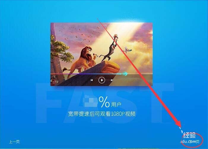 1、接著,提示寬帶能夠提速1.5倍以上,單擊下一頁。