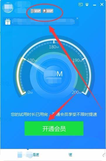 3、開通會員界面,可以選擇下行提速和上行提速。