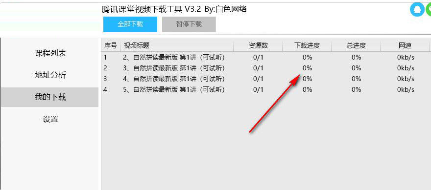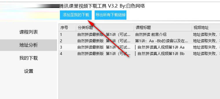 6、勾選以后點(diǎn)擊分析選擇的地址,隨后軟件自動(dòng)分析課程地址