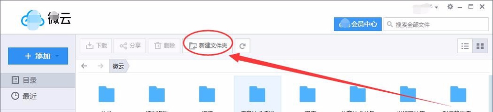 2、點擊新建文件夾按鈕,可以在微云中創(chuàng)建文件夾。