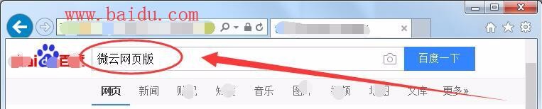 1、打開百度網站,在搜索欄中輸入微云網頁版。