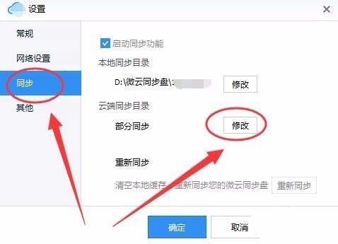 5、修改云端同步目錄窗口中,可以修改同步的微云文件夾。