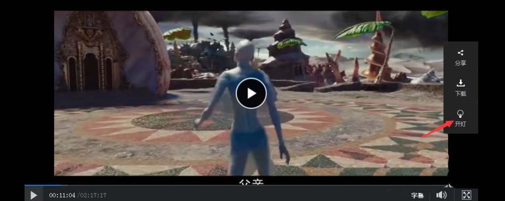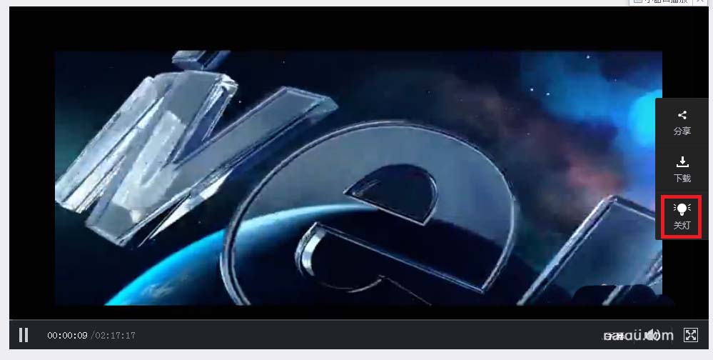 6、想要恢復原來的效果,只需要把鼠標移到視頻上點擊“開燈”按鈕
