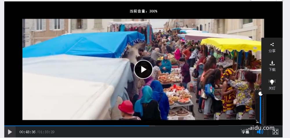 4、把鼠標(biāo)移動到視頻右下角喇叭形狀的按鈕上