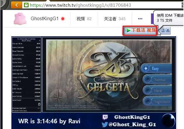 1.安裝并運行Internet Download Manager,打開瀏覽器和twitch視頻地址,播放中會出現(xiàn)一個【下載該視頻】按鈕,點擊它。