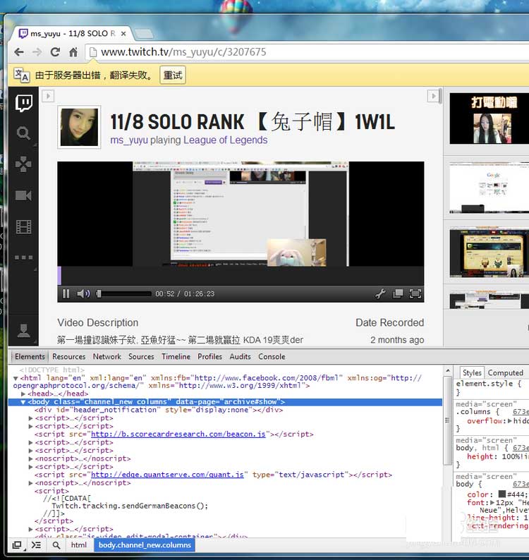 1、首先我們打開要下載的twitch播放地址,比如圖上這個