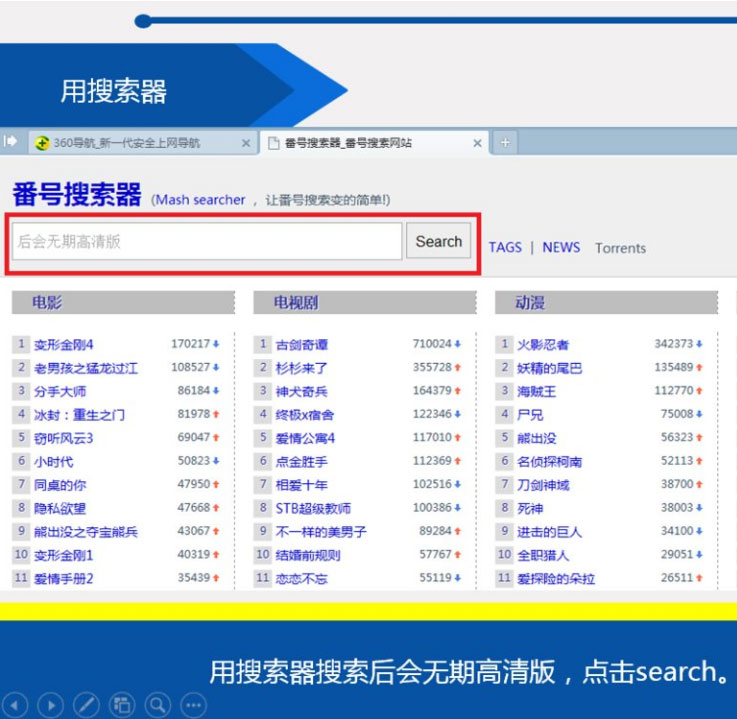 2、用搜索器搜索后會無期高清版,點擊search。