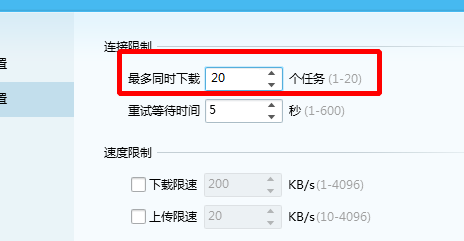 7、下載最多同時下載為20個,我們設置為最大下載值就行了