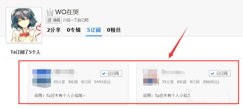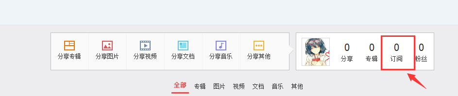 4、在分享狀態里面又有很多的功能,你在右側可以看到很多,有分享,專輯,訂閱,粉絲,你點擊訂閱