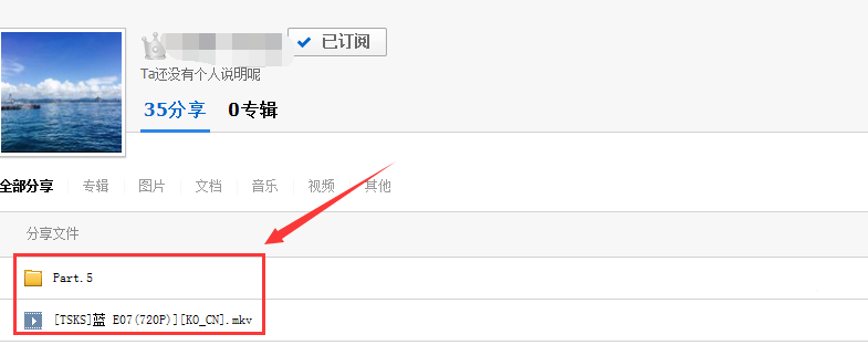 6、之后你會發現來到對方的賬號里面,這里面查找你所訂閱的視頻或者是其他即可,當然,這里面只有對方分享的,對方沒有分享你是看不到的