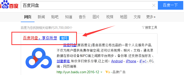1、第一步首先是你得有一個網盤號,網盤號就是你的百度賬號,這樣的話你才可以在網盤里面看東西的,先在百度里面搜索百度網盤,從官網進去