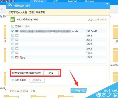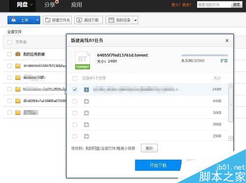 下載完成BT種子文件后,將自動進行解析并彈出如圖所示的“新建離線Bt任務”窗口,從此窗口中勾選要下載的文件,點擊“開始下載”按鈕。