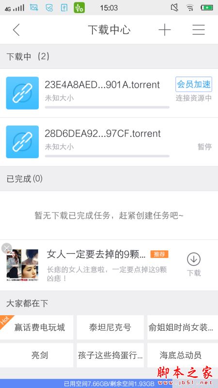 8、我們可以看到,下載中心界面已包含了該下載任務了。