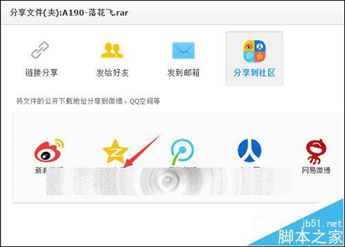 4、點(diǎn)擊分享到社區(qū)之后,就會(huì)彈出幾個(gè)社區(qū)的網(wǎng)站。選擇下面空間的圖標(biāo)點(diǎn)擊一下。