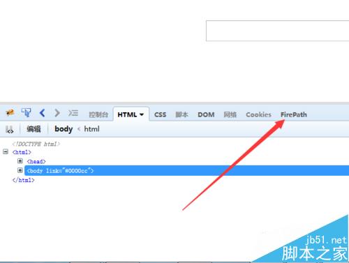 4、這樣就直接打開firebug工具,定位元素使用firepath的精確定位到路徑元素,可點(diǎn)擊firepath的選項(xiàng)。