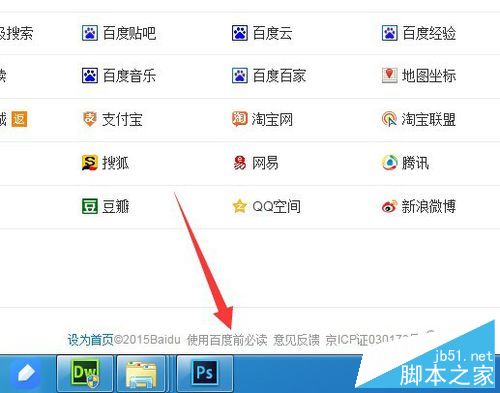1、首先我們打開百度首頁,看首頁的最底部有個《使用百度前必讀》的鏈接,點擊這個鏈接。