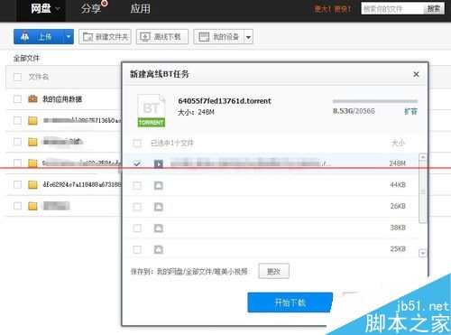 2、接下來選擇修改后的BT種子文件,彈出如圖所示的”新建離線下載”界面后,勾選要下載的視頻文件,點擊“立即下載”按鈕。