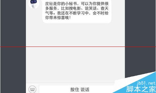 6、按住說話,比如用普通話說“車子”,說完后度秘便會與你聊天,說出可能你感興趣的內容。如果你的問題夠詳細,得到的結果越準確。無聊的時候,你還可以與度秘閑聊,把度秘作為一個好友聊各種話題,他都可以回答你。讓他講個笑話什么的,都是可以的。