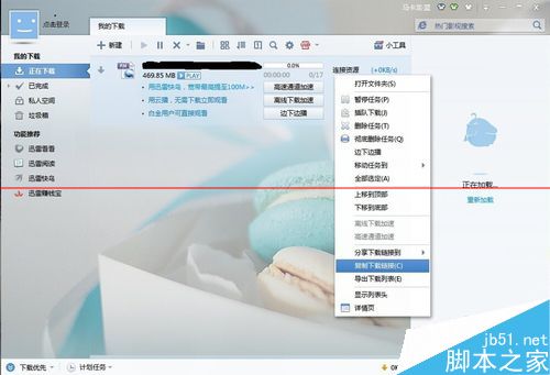 2、在下載任務上,右鍵單擊,選擇復制下載鏈接。