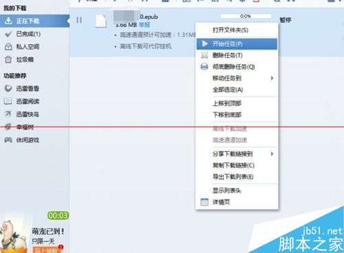 2、出現這個提示的時候,我們將鼠標放到該下載任務的位置上并右鍵。