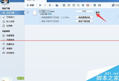 4、接著,暫停任務后,這時我們再把鼠標定位到這個已經暫停下載的任務上。