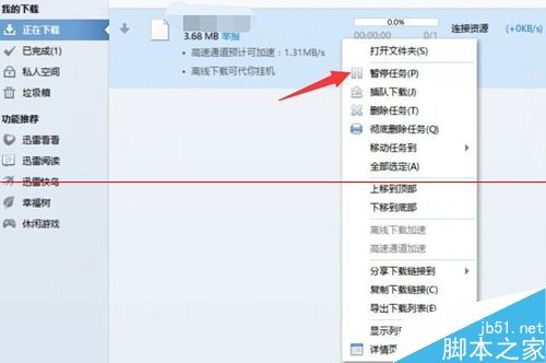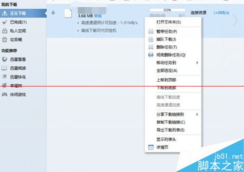 5、然后,我們再一次右鍵這剛剛暫停的下載任務。