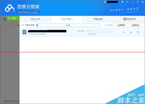 7、然后選中該文件,點擊文件上方的下載,就能夠在百度云管家中下載該資源。能夠看到已經有了下載速度,能夠下載了。